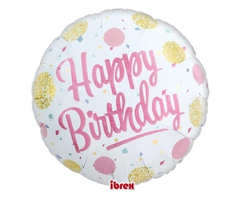 #BFK Balon Ibrex Hel, okrągły 14", Happy Birthday Balloons, packed