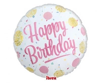 #BFK Balon Ibrex Hel, okrągły 14", Happy Birthday Gold&Pink Dots, packed