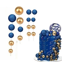 Toppery na tort kule na piku ZŁOTO NIEBIESKIE BROKATOWE wz.VI