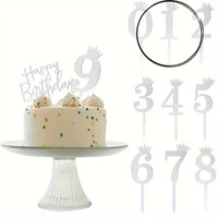 Topper na tort SREBRNY Z KORONĄ cyfra 3 TRZY TRÓJKA 11x4 cm