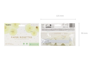 Rozety dekoracyjne, jasny kremowy, 20-30cm (1 op. / 3 szt.)