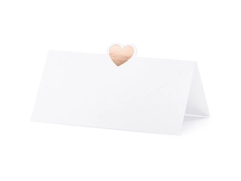 Wizytówki na stół - Serce, różowe złoto, 10x5cm (1 op. / 10 szt.)