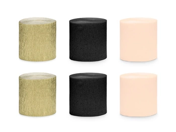 Krepa 5cm/10m, zestaw 6 szt., mix czarno-złote (1 op. / 6 szt.)