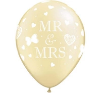 #BL Balon QL 11" z nadr. "MR. & MRS.", metalik kość słoniowa / 25 szt. KK