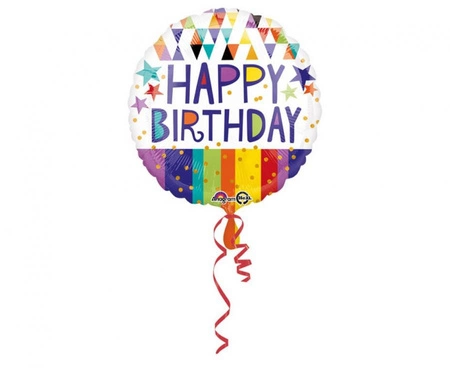 #BFK Balon foliowy 18" CIR Happy Birthday - Triangles, Stripes & Stars, zapakowany
