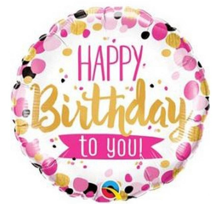 BALON FOLIOWY HAPPY BIRTHDAY TO YOU PINK & GOLD DOTS