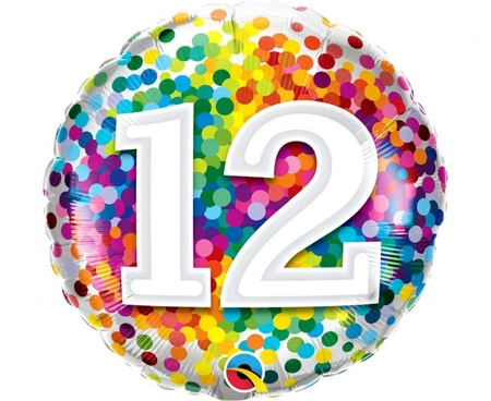 BALON FOLIOWY TĘCZOWE KONFETTI 12