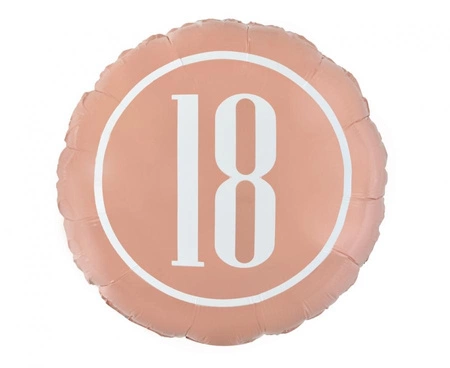 Balon foliowy Liczba 18, 18 cali Rozmiar: 18 cali (46cm) Kolor: różowo - złoty, biały Ilość sztuk w opakowaniu: 1 szt. Kształt: okrągły Nadruk: 18 Producent: Godan S.A.
