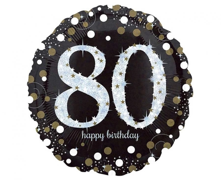 BALON FOLIOWY SPARKLING BIRTHDAY 80 OKRĄGŁY, ZAPAKOWANY