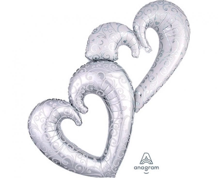 BALON FOLIOWY SREBRNE ZŁĄCZONE SERCA