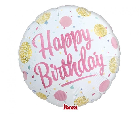 #BFK Balon Ibrex Hel, okrągły 14", Happy Birthday Gold&Pink Dots, packed