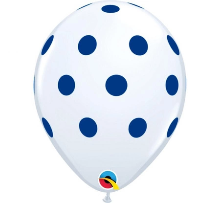 #BL Balon QL 11" z nadr. "Niebieskie grochy", pastel biały / 25 szt. KK