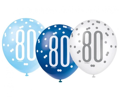 BALONY LICZBA 80 URODZINY Rozmiar w calach: 12 cali Materiał: 100% Lateks Ilość sztuk: 6 szt. Producent: Unique