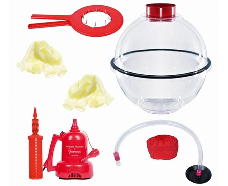 Do maszyny wkładany jest balon 18 calowy (do kupienia także w naszym sklepie w wielu wzorach). Ekspander pomaga rozciągnąć szyjkę balonu, przez którą można włożyć prezent. Następnie pompka zasysa powietrze formując balon do rozmiaru, w którym łatwe będzie umieszczenie np. małej maskotki, konfetti lub innego prezentu bądź ozdoby.