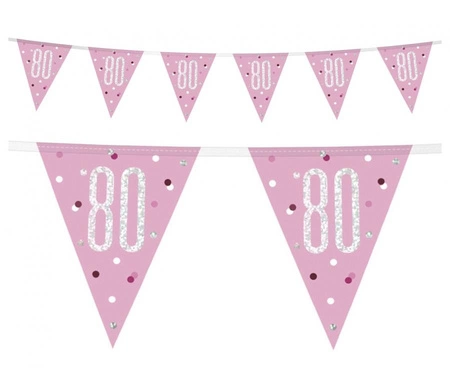 BANNER GLITZ 80 URODZINY, Z FLAGAMI, RÓŻOWY