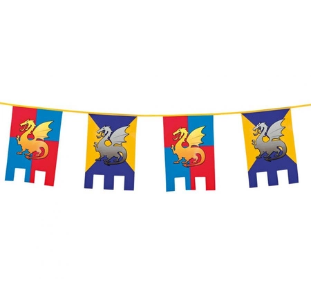 GIRLANDA FLAGI RYCERZE I SMOKI Rozmiar: 6 m Kolor: różnokolorowy Materiał: poliester Ilość: 1 szt. Producent: Boland