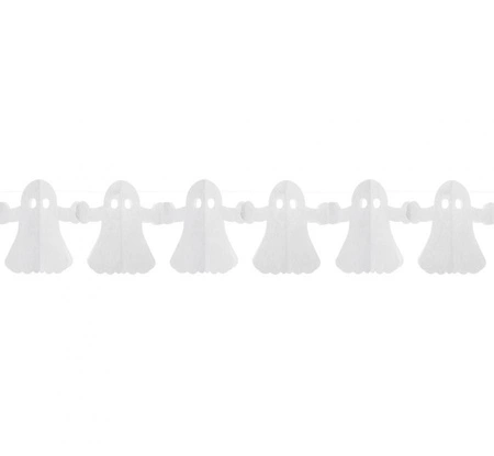 GIRLANDA DUSZKI Wymiary: 19.5 x 18.2 x 300 cm Materiał: papier Kolor: biały To wspaniała dekoracja na HALLOWEEN!