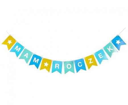 GIRLANDA PAPIEROWA Z NAPISEM MAM ROCZEK, IDEALNA NA ROCZEK CHŁOPCA