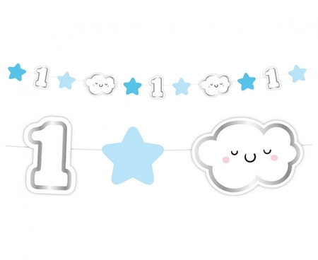 #DEGI Girlanda papierowa mini Roczek, niebieska, dł. 120 cm, rozm. elementu 8.4 x 6 cm