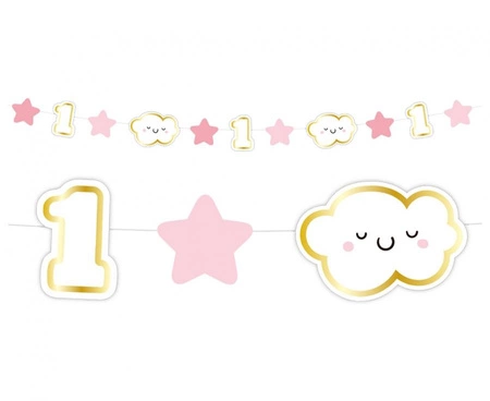 #DEGI Girlanda papierowa mini Roczek, różowa, dł. 120 cm, rozm. elementu 8.4 x 6 cm