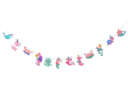 GIRLANDA PAPIEROWA Z MOTYWEM PODWODNEJ KRAINY Długość: 180 cm Materiał: papier Kolor: wielokolorowy, pastelowy W opakowaniu: 1 szt. Producent: Godan S.A.