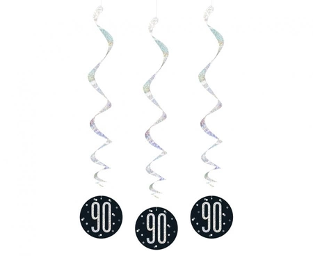 DEKORACJA WISZĄCA GLITZ 90 Wymiary: 81 cm Ilość sztuk w opakowaniu: 6 Kolor: czarny Nadruk: liczba 90