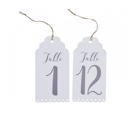 Numery na stoliki Botanics, białe, 7x13 cm, cyfry 1-12 Zestaw zawiera 12 numerów na stoły (od 1 do 12 ) Ilość: 12 sztuk