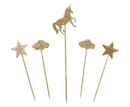 #DEI Pikery dekoracyjne Jednorożec, złoty brokat, 5 szt.