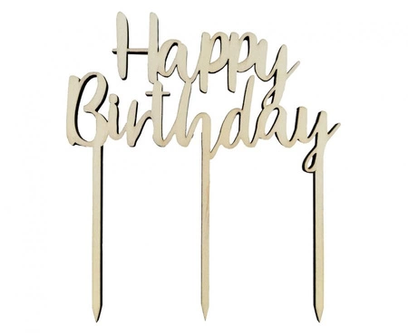 #DETO Dekoracja drewniana na tort Happy Birthday, 13x14 cm