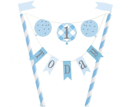#DETO Dekoracja na tort Topper Gingham 1st Birthday, niebieska KK