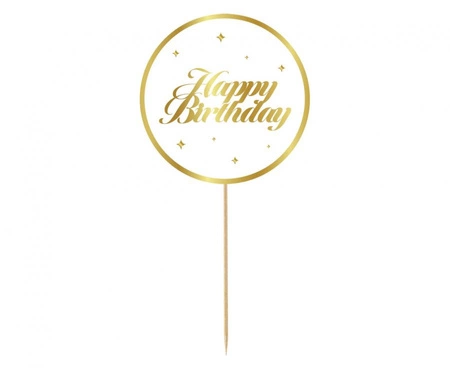 #DETO Dekoracja pap. na tort B&G Party - Happy Birthday, biała, gwiazdki, 10 cm