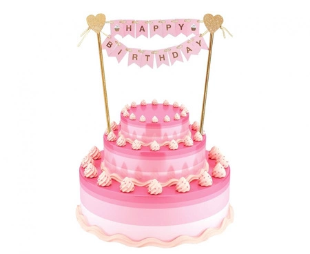 #DETO Dekoracja papierowa B&G na tort Happy Birthday, jasnoróżowa, 25 cm