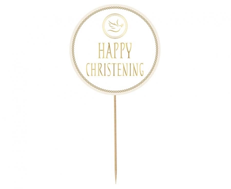 #DETO Dekoracja papierowa na tort Happy Christening - gołąbek, średnica 14 cm KK