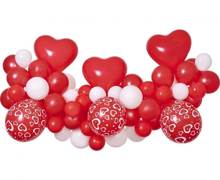 GIRLANDA BALONOWA DIY LOVE Zestaw do Girlandy Balonowej zawiera: 30 balonów – 13 cm (5”) 30 balonów – 26 cm (10”) 3 balony – 33 cm (13”) 3 balony – 30 cm (12”) 1 taśma do girland – 3 metry Wymiary gotowej girlandy: dł. 200 cm x szer. 50 cm x wys. 70 cm* Kolory: Odcienie czerwieni, biały Producent: Gemar *ostateczny rozmiar girlandy może się nieco różnić od podanych wartości, w zależności od stopnia napełnienia balonów i sposobu montażu.