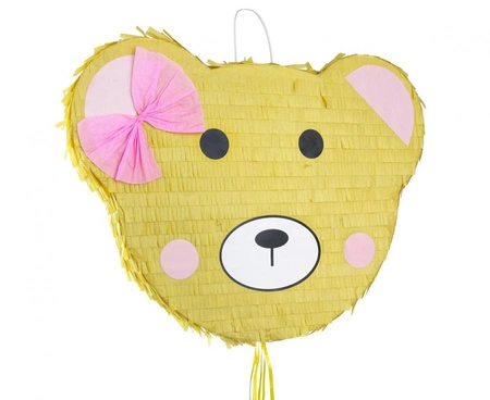 PINIATA W KSZTAŁCIE MISIA Z KOKARDĄ Kolor: jasnożółty, różowy Wymiary: 45x7x35,5 cm Ilość: 1 szt. Producent: Godan