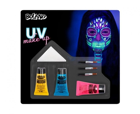ZESTAW DO MALOWANIA TWARZY UV Kolor: żółty, niebieski, różowy W opakowaniu: 1 szt. (zestaw) Producent: Boland