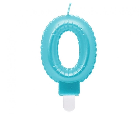 #SC16 Świeczka cyferka 0, perłowa jasnoniebieska, 7 cm KK