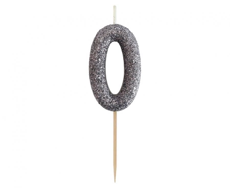 #SC3 Świeczka piker B&C cyferka 0, czarna, NOWY BIO BROKAT, 11x3.5 cm (stare)