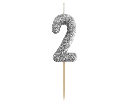 #SC3 Świeczka piker B&C cyferka 2, czarna, NOWY BIO BROKAT, 11x3.5 cm