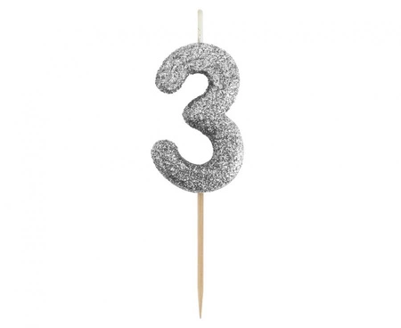 #SC3 Świeczka piker B&C cyferka 3, czarna, NOWY BIO BROKAT, 11x3.5 cm