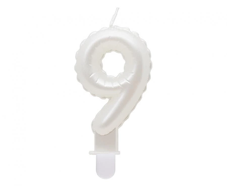 #SC6 Świeczka B&C cyferka 9, perłowa biała, 7 cm KK