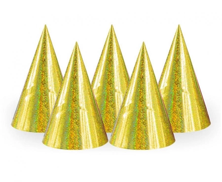 PAPIEROWE CZAPECZKI URODZINOWE, HOLOGRAFICZNE, ZŁOTE