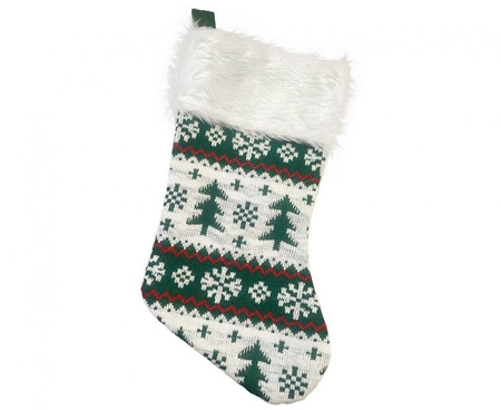 SKARPETA ŚWIĄTECZNA ZIELONA W CHOINKI Kolor: biały, zielony Wymiary: 41x22 cm Ilość: 1 szt. Producent: Godan