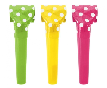 ZESTAW TRĄBEK HOLOGRAFICZNYCH, 3 SZT. Długość trąbki: 25 cm (po rozwinięciu) Kolor: różnokolorowy Ilość sztuk: 3 szt. Producent: Godan S.A.