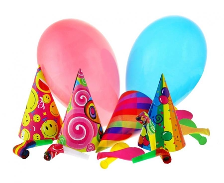 Zestaw zawiera: 8 balonów, 8 czapeczek, 8 trąbek