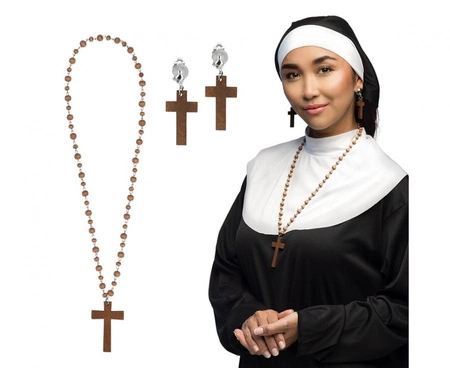 ZESTAW ZAKONNICY, SIOSTRY ZAKONNEJ Zestaw zawiera: naszyjnik i kolczyki Kolor: brązowy Ilość sztuk: 1 szt. (zestaw) Producent: Boland