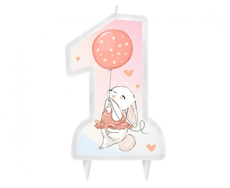 ŚWIECZKA TORTOWA, CYFRA 1, NA ROCZEK, Z KRÓLICZKIEM