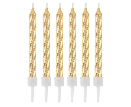 #SU Świeczki B&C z podstawkami, zakręcone złote, 8 cm, 12 szt.