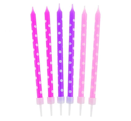 ŚWIECZKI GROCHY DLA DZIEWCZYNEK, KOLOROWE, 24 SZT. Wysokość: 10 cm Średnica: 0,5 cm Ilość: 24 szt. Producent: Godan S.A.