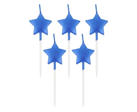 ŚWIECZKI PIKERY GWIAZDKI NA PATYCZKU, METALICZNE NIEBIESKIE, 5 SZT.